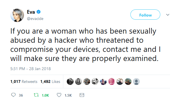 Because someone asked: Yes, she is really EFF’s head of cybersecurity. See the listing for her on the EFF’s official site (which also links to her Twitter account)