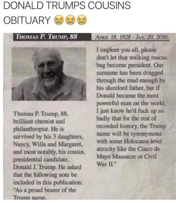Isn’t it interesting the way the biggest monsters have family who end up trying so damn hard to do good? For example, there are literally dozens of reports that Herman Goering’s little brother Albert used his position to help Jews and political dissidents escape the Holocaust. It’s almost like they can SEE what their family members are doing and are trying to get something done but can’t get anyone to listen to them and instead do everything they can to strike back.