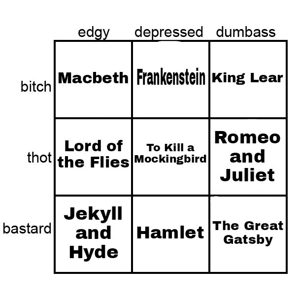 skysky1670 Uncategorized August 30, 2018December 16, 2018 1 Minute theevilsnuffleupagus: alignment chart based on which piece of high school english class literature you actually enjoyed Source: theevilsnuffleupagus Share this: Share on X (Opens in new window) X Share on Facebook (Opens in new window) Facebook Like Loading... Related Published by skysky1670 View all posts by skysky1670 Published August 30, 2018December 16, 2018