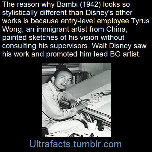 He was a young artist employed by the Disney studio, but tasked with the entry-level job of finishing off the work of the animators and crafting the “in-between” animations that completed the characters’ movements. Wong had learned that studio executives were creating a film from the new novel, Bambi, A Life in the Woods by Felix Salten. Tom says the young artist read the book and without consulting his supervisor, “took the script and painted some visual concepts to set the mood, color and the design.”