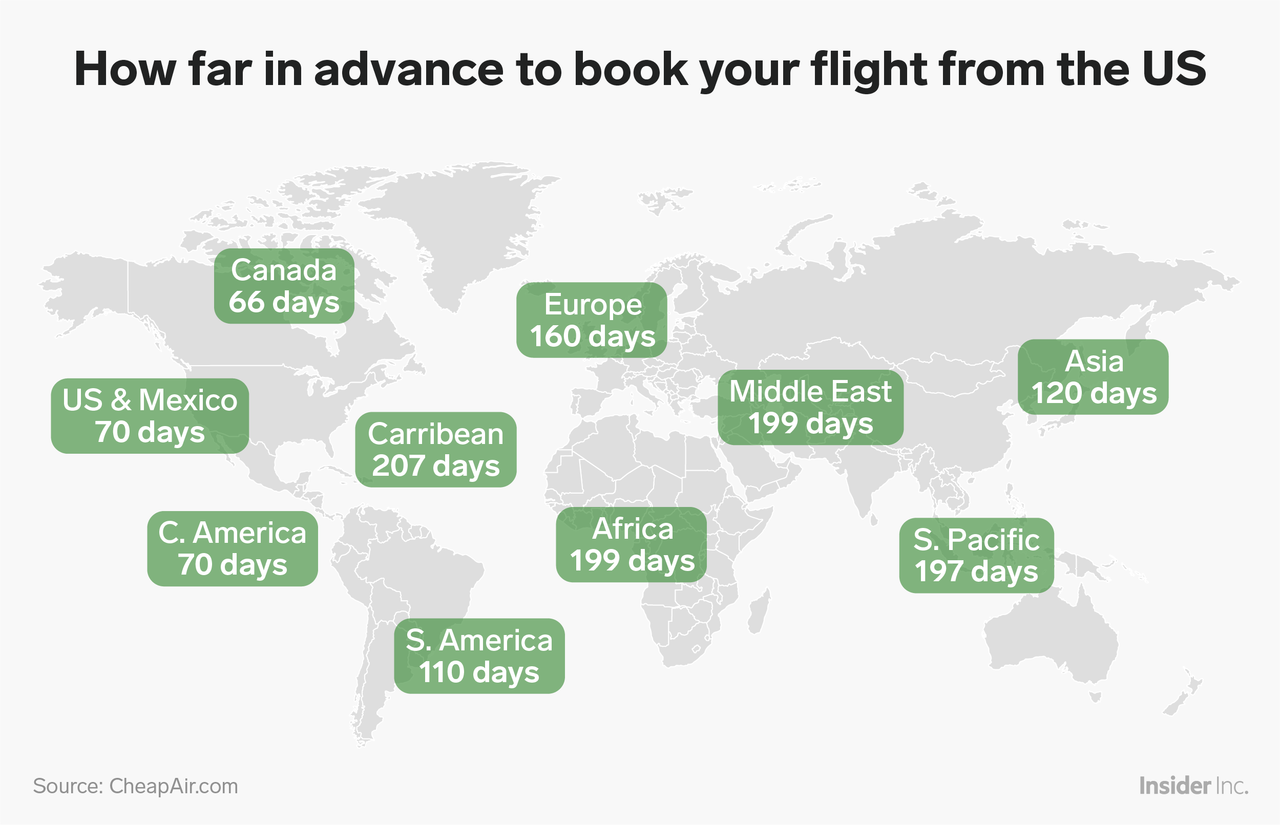 Don’t wait until the last minute to book your flight. Here’s the historically best time to book for the best deals, depending on which region of the world you’re visiting. skysky1670 September 11, 2018 Published by skysky1670 View all posts by skysky1670 Published September 11, 2018