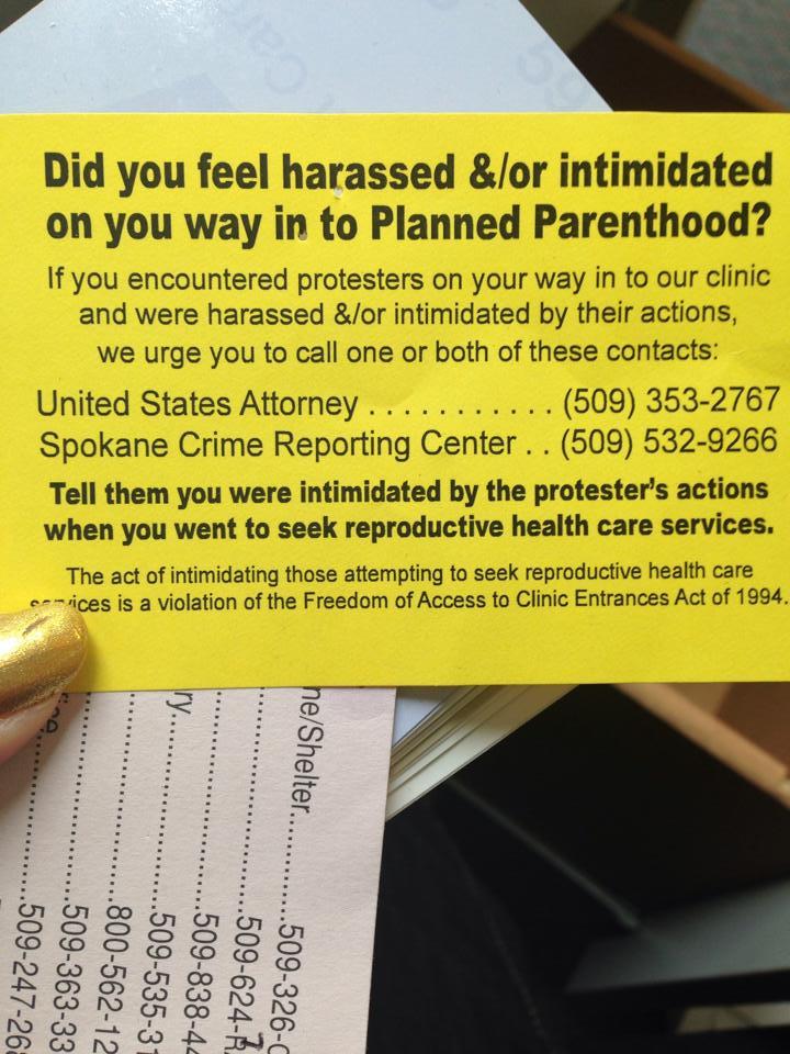 It is illegal to willingly harass and intimidate a person on purpose, even if you are doing it outside of an abortion clinic. Remember this, pro-lifers. You can and will be charged. ❤