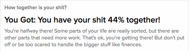 INTP- 44% of my shit is together.