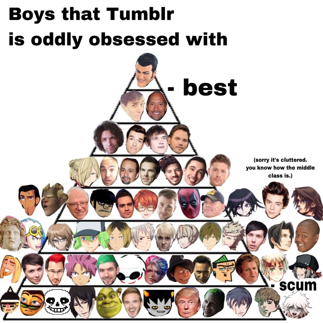 1) if you disagree i can inform you this is based off of many things like morality, outsider’s view, fan favorites, talent, etc. so it’s not my opinion, nor yours.