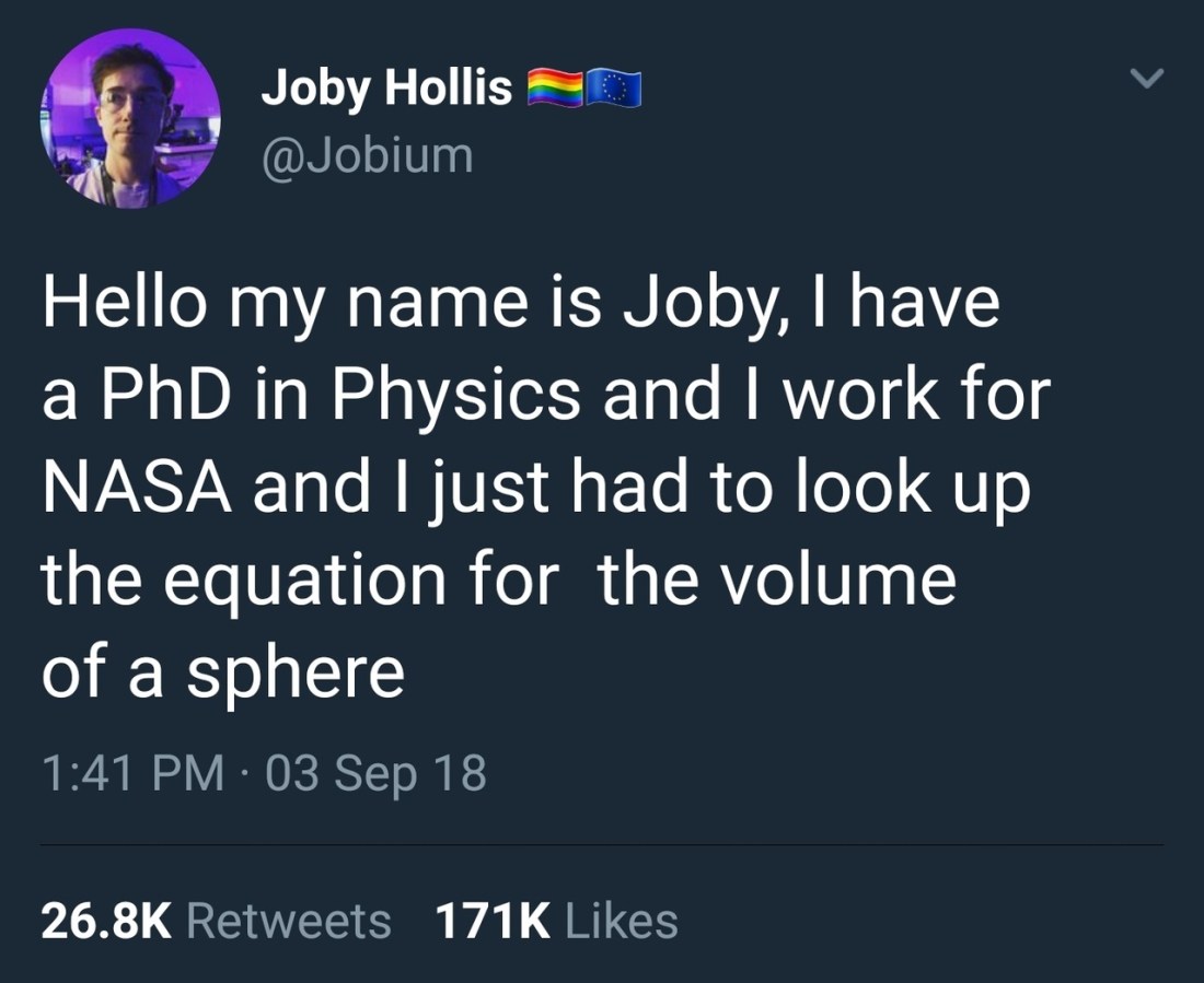 Fun fact as you go through college all the people majoring in any kind of math or engineering gradually forget how to do basic fucking arithmetic because their brain is full of the parts of math that you can’t do on a calculator in less than a second. Eventually if they’re cut off from their tech they pretty much have to ask an art major how long division works.