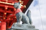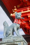 Guardian fox statues often carry scrolls, balls, or rice in their mouth. This one at Kyoto’s Fushimi Inari shrine has a key which is rather uncommon.