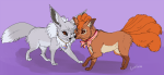 (quick doodles of the characters in my latest explorers of sky playthrough! theyre lua the shiny eevee/umbreon aka my self insert, and soleil the vulpix/ninetales. their team is called team eclipse and yes, they’re very gay. happy pride month)